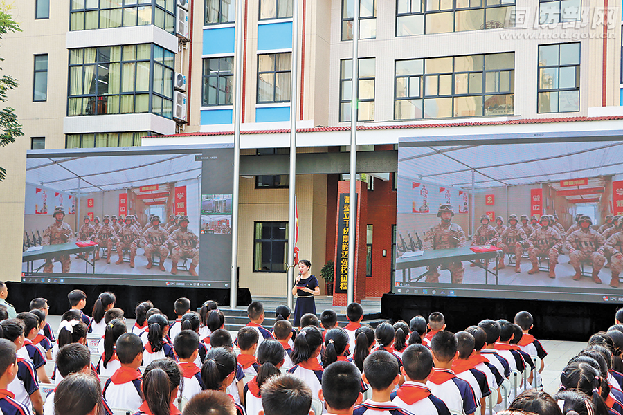 澧州实验小学与新疆军区某团某连官兵视频连线,共上国防教育课。阳立秋 摄