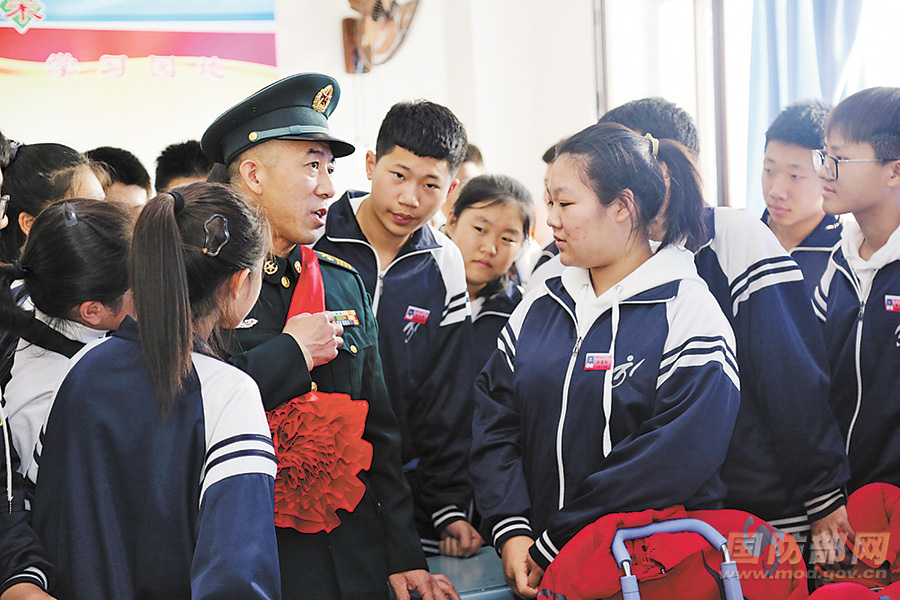 11月9日,二等功臣、火箭军某部军士赵晖来到母校——吉林省长春市九台区第三十一中学,和学校师生座谈交流,分享自己的从军经历,鼓励学生们树立远大理想,长大后为国防建设贡献力量。
