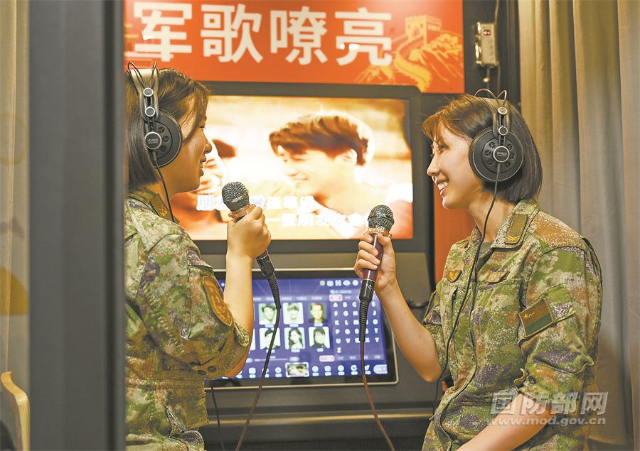 休息时间,第77集团军某旅组织形式多样的文娱活动。图为2名战士在活动室里唱歌。蒋振梁摄