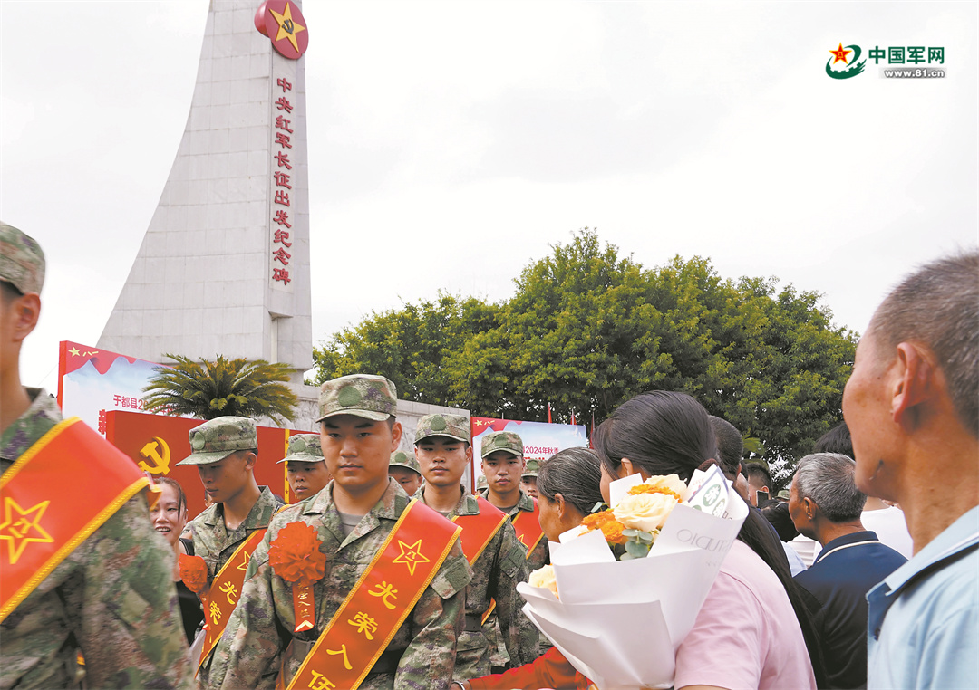 9月下旬,于都籍新兵从中央红军长征出发地纪念园奔赴军营。李章荣 摄