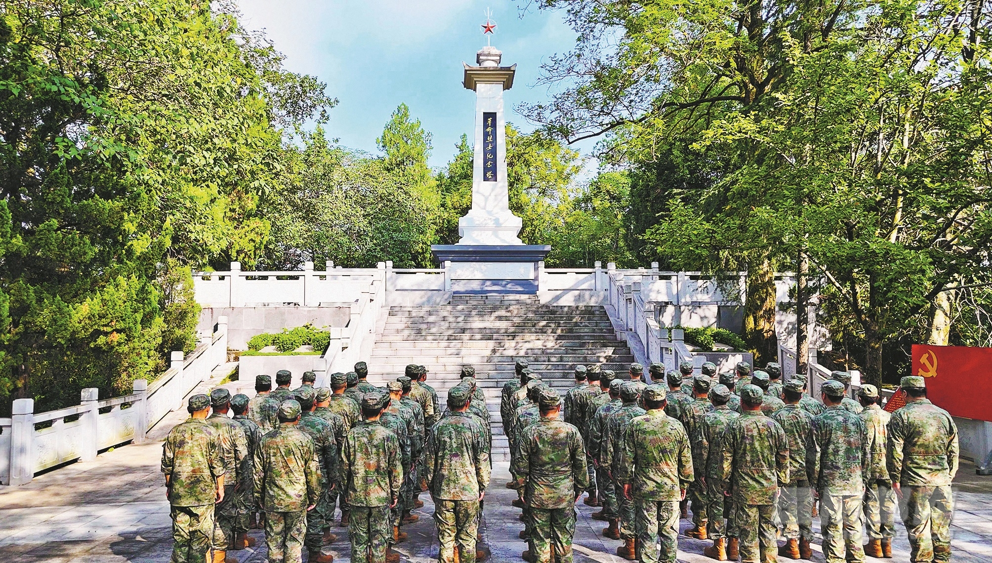 烈士纪念日前夕,安徽省青阳县人武部组织基干民兵走进县烈士陵园,缅怀革命先烈,汲取奋进力量。张利刚摄