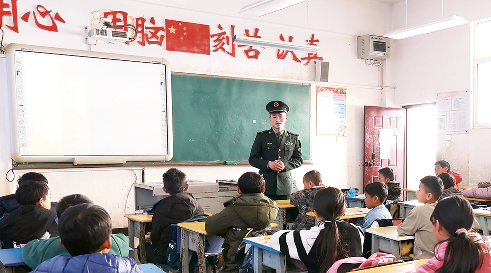 “雷锋班”所在连队官兵开展爱心助学活动。图为战士为学生讲雷锋的故事。