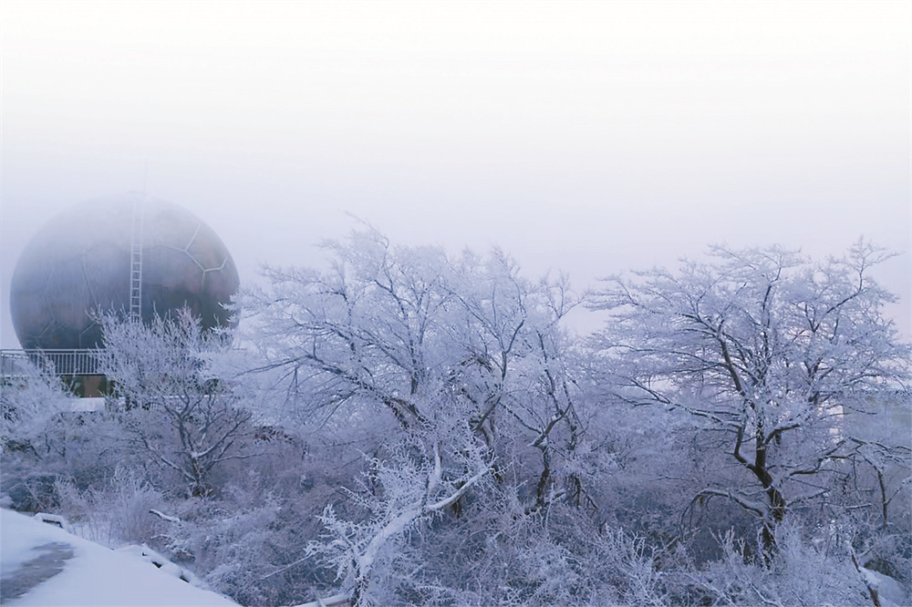 转过一个弯,阳光破云而出。温海涛抬头望雪,光斑洒在远处旋转的雷达球上,如灯塔微亮。“这是山海的‘眼睛’,风雪再大也转动不停,我们又何尝不是如此。”站在排头,望着远方,温海涛笑容温暖。