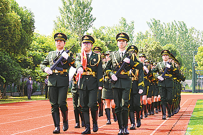 校国旗护卫队参加升旗仪式。董丹丹 摄