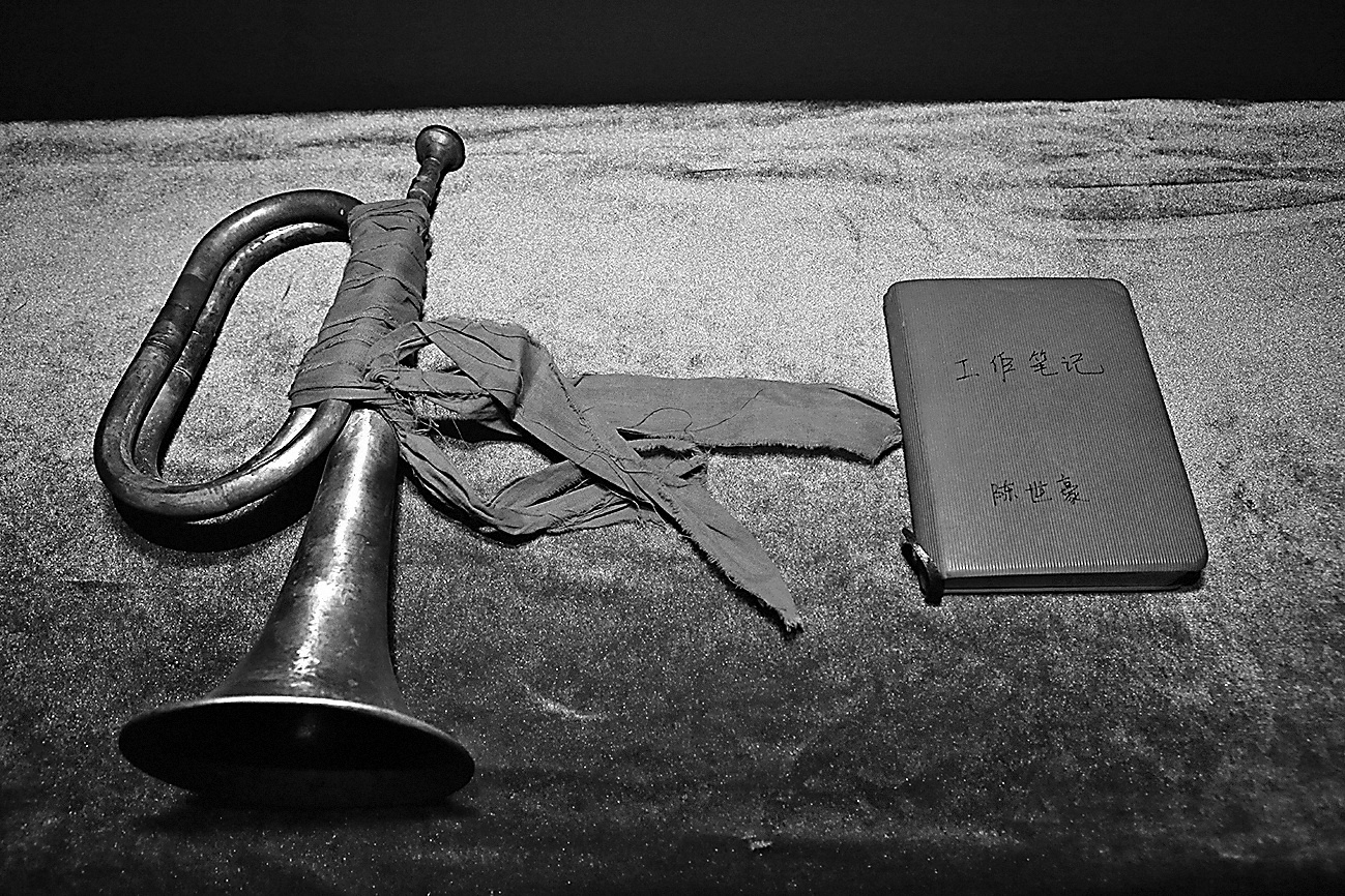军号与笔记本,一老一新,默默相依,仿佛在说:冲锋的号角从未停歇,胜战的故事仍在续写。