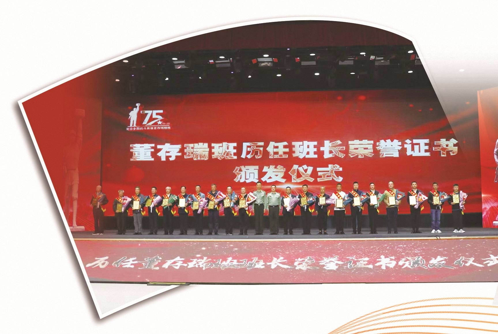 董存瑞生前所在部队为“董存瑞班”历任班长颁发荣誉证书。