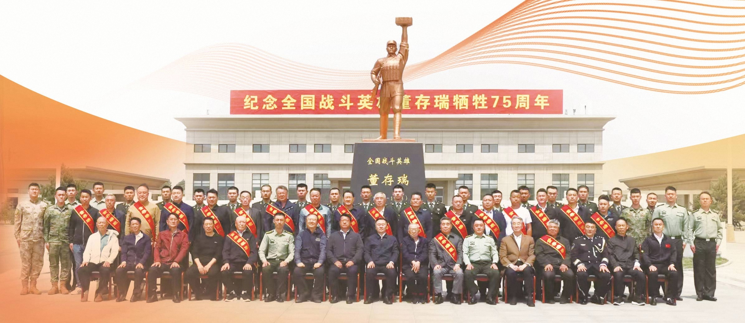 2023年5月,20位“董存瑞班”历任班长与部队官兵在董存瑞雕像前合影。