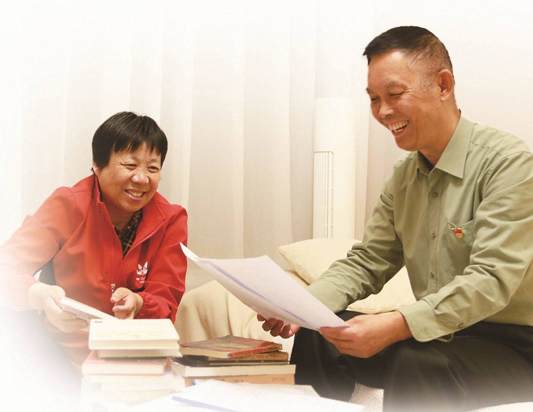 吕景成与妻子查阅资料。