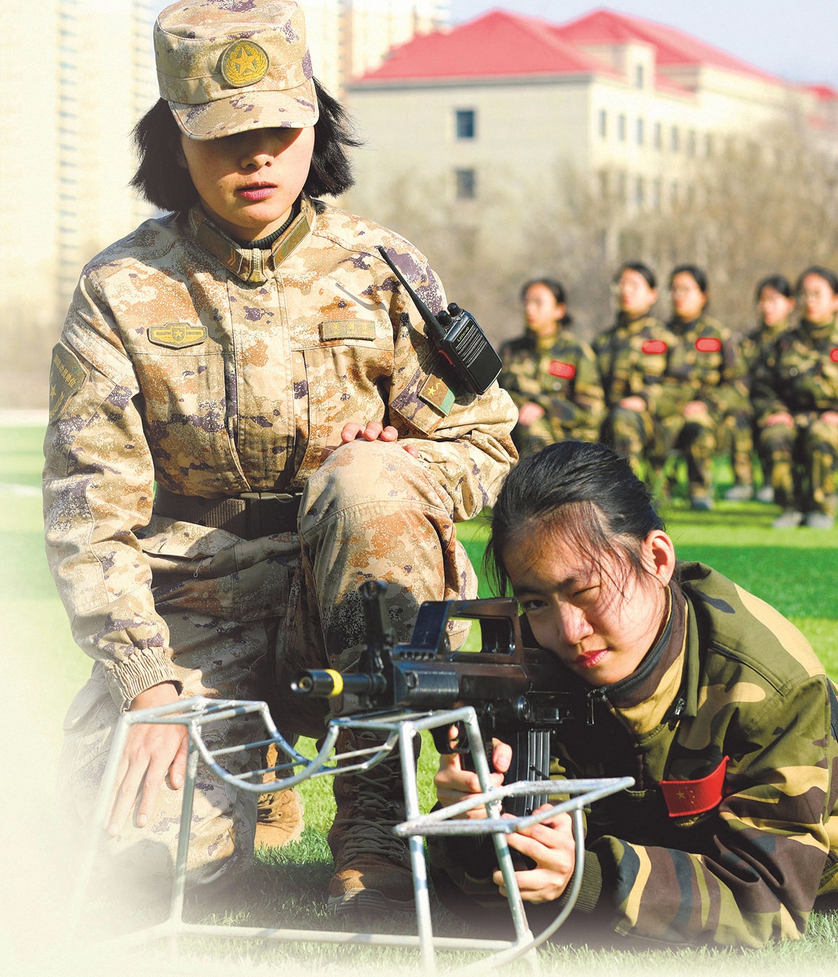 带训班长纠正学生据枪瞄准动作。焦鹏飞摄
