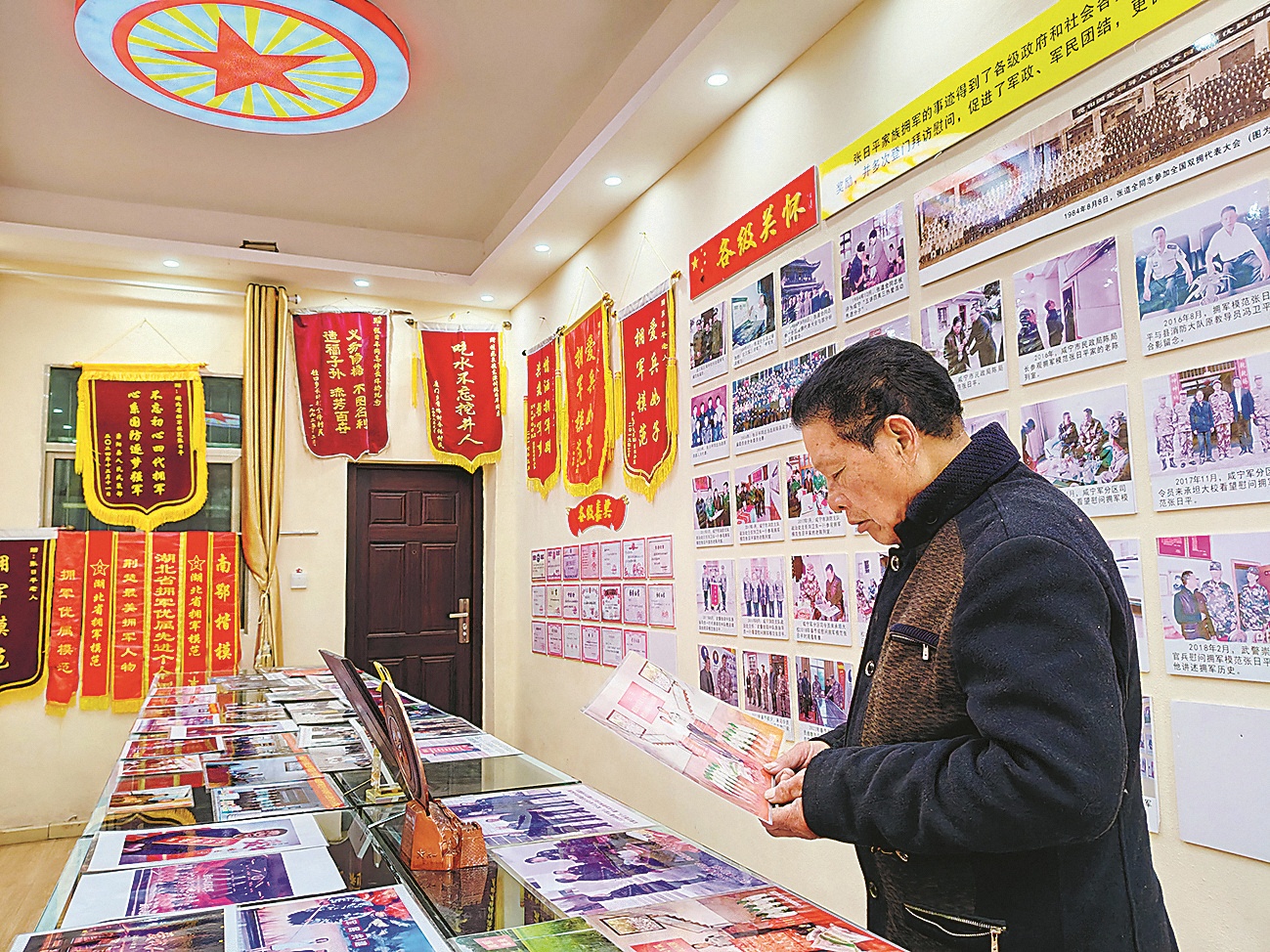 湖北省拥军优属先进个人、荆楚最美拥军人物,“情洒拥军路,共筑强军梦”……拥军陈列室里,一本本荣誉证书、一面面锦旗、一张张照片,见证了张家四代接力拥军的历史。这间在张日平家客厅旁的拥军陈列室,已成为当地开展国防教育的一个场所。