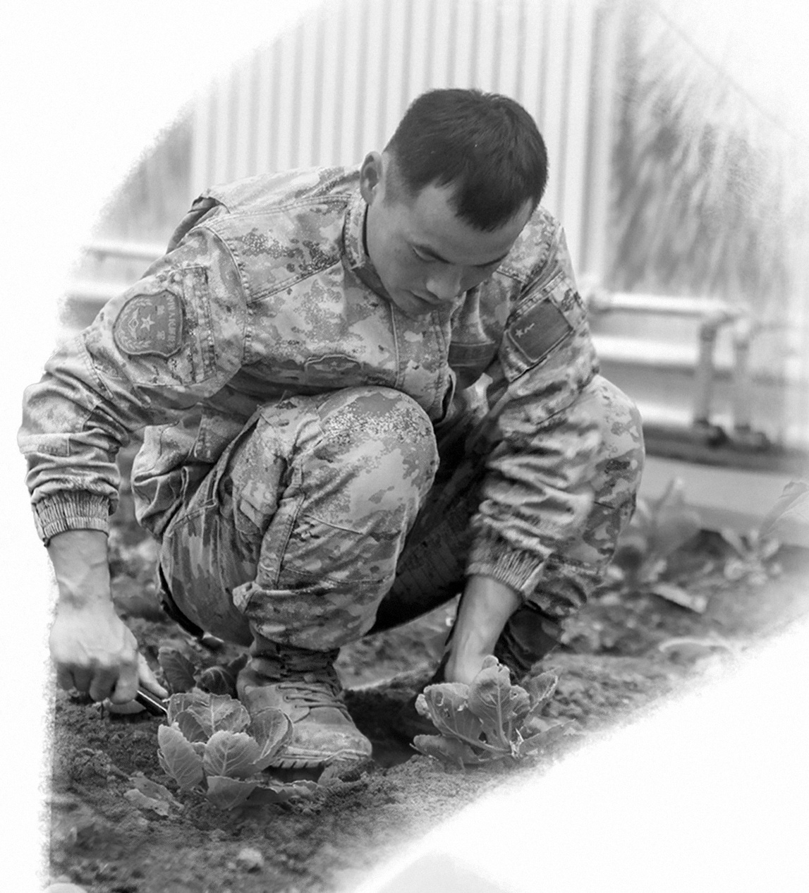 新疆军区契恰尔边防连战士种植蔬菜。邱天伦 摄