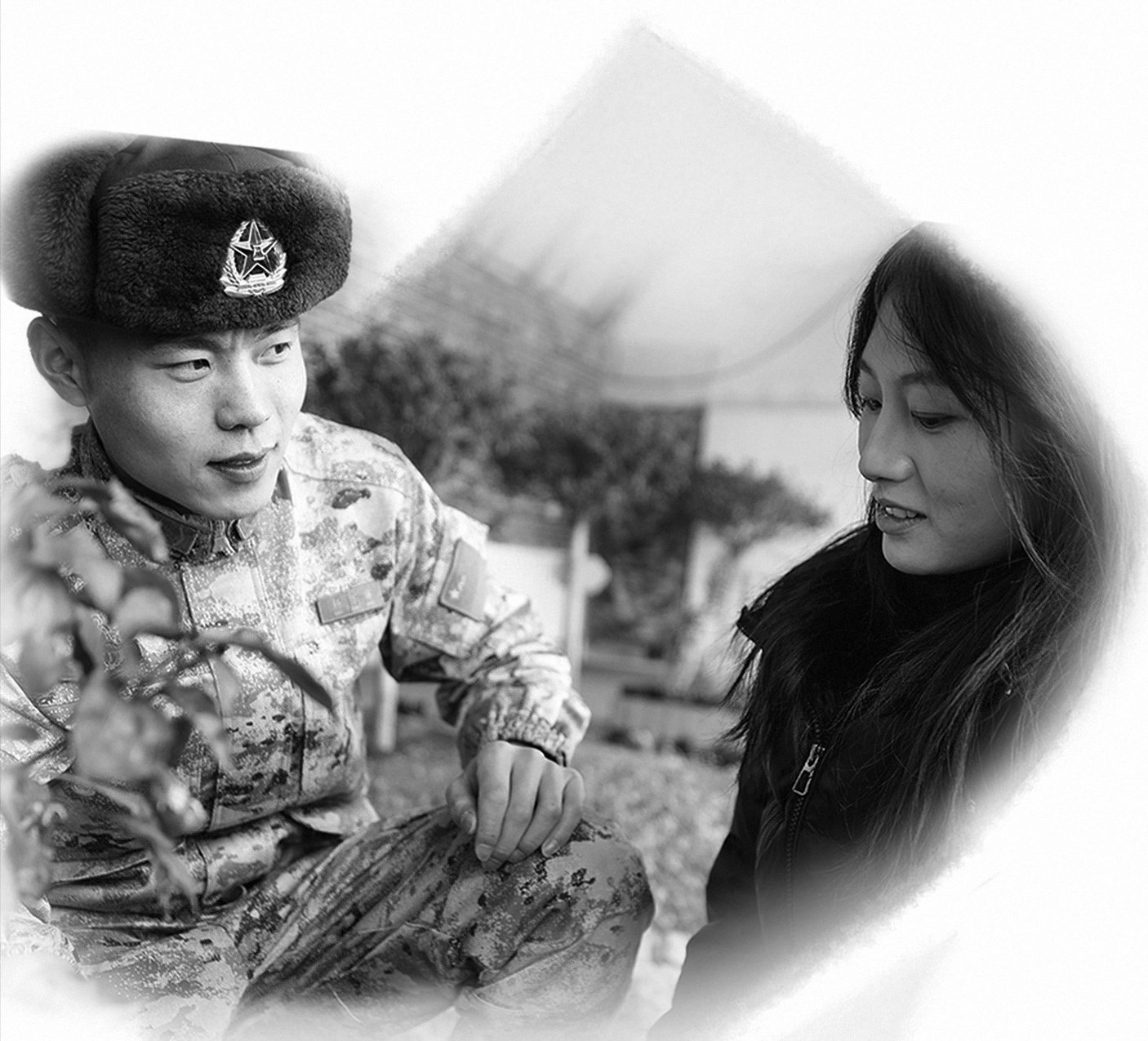 刘梅的到来,让冰天雪地里的营房热闹起来。杨万祥和战友们精心布置房间,他还特意在连队四周找到一块大小合适的石头打磨平整,请一名擅长绘画的战士在上面画下他们结婚证上的红底照,放在连队的“小家”里。