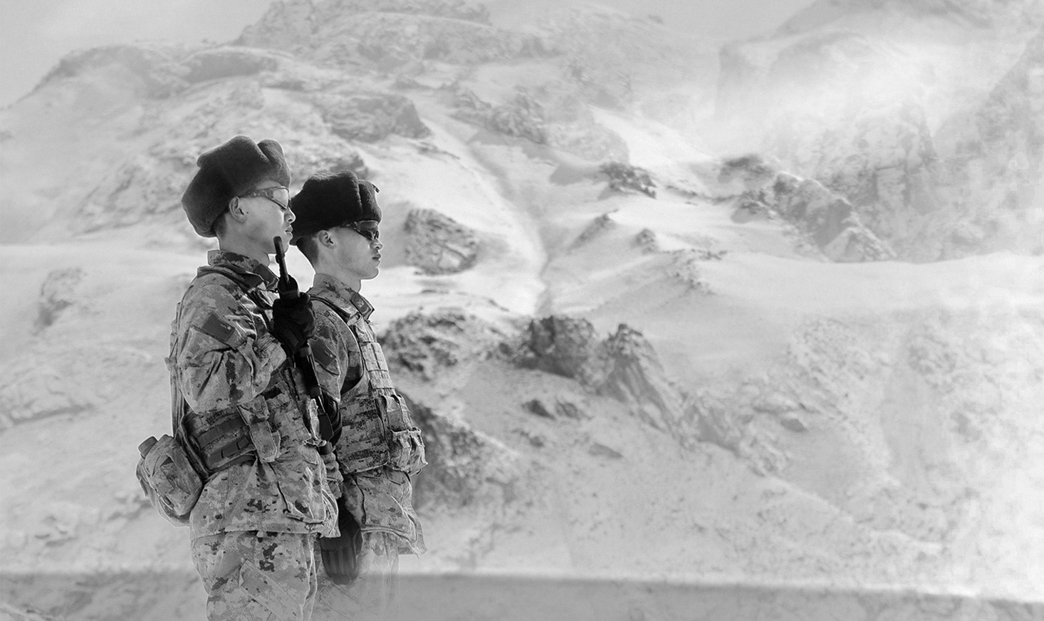 雪山下,新疆军区契恰尔边防连战士正在站哨。解放军报特约记者 王军强 摄