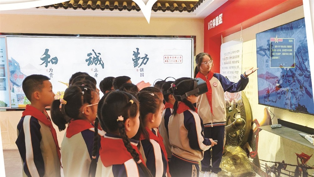 江西省南昌市东湖小学“红领巾讲解员”借助VR技术讲述红军长征故事。陈晓华摄