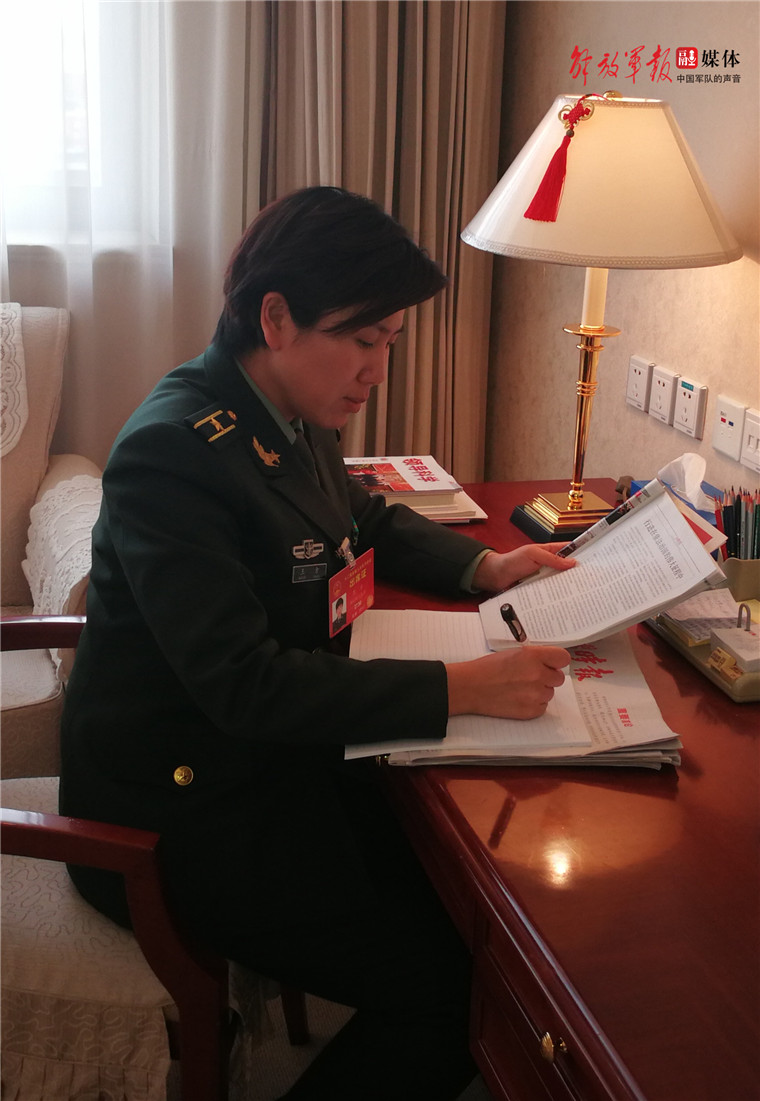 王方的笔记本上记满了她前期学习的内容,此次大会她将主要提出“关于如何让军人成为全社会尊崇的职业”的建议。谈及前段时间她所亲身经历的“军人依法优先通道”,王方充满自豪地说:“‘让军人成为全社会尊崇的职业’,这句话是对所有的军人艰辛付出的尊重,是对军人莫大的鼓舞。这几年,军人社会地位有了很大改善,但我们要走的路还有很远。”