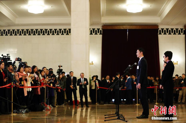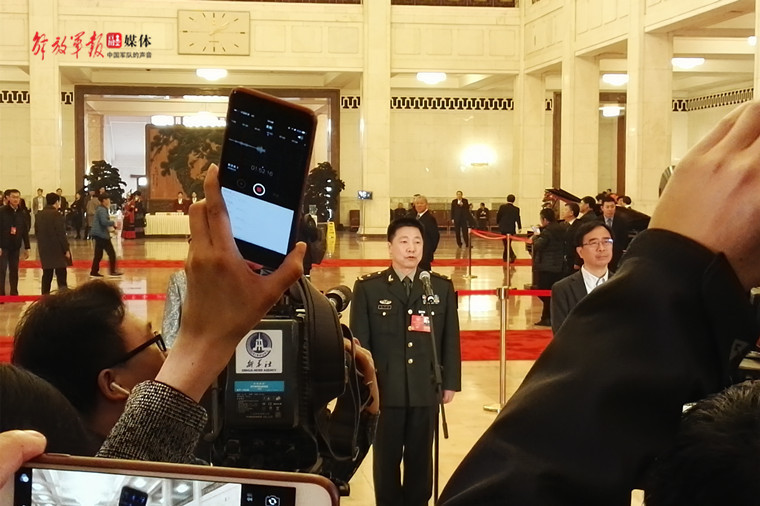 3月3日,首场“委员通道”现场,杨利伟委员回答记者提问。中国军网记者 牛晨斐 摄