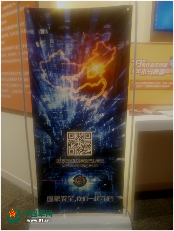 4月15日,“护航新时代”2018年度全民国家安全教育日主题宣传在北京中华世纪坛举办启动仪式、宣传展览等活动。图为国家安全计划举报受理平台二维码。中国军网记者 杨帆 摄
