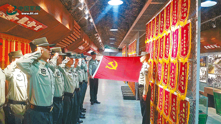 南部战区陆军某边防旅“钢七连”党员在战壕军史馆重温入党誓词。王永青摄