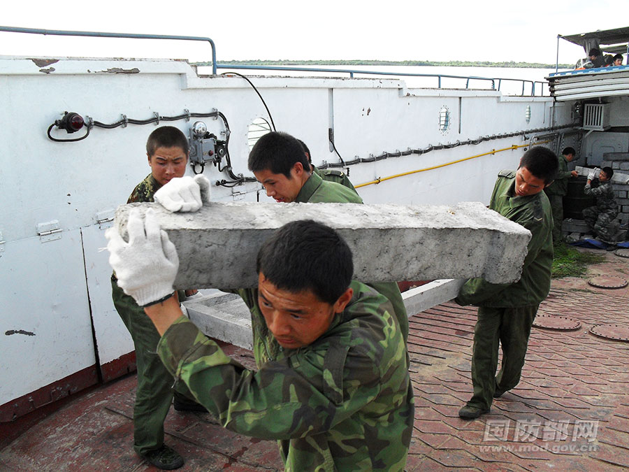 登岛之初,岛上连最基本的生活条件都没有。官兵们在无路、无水、无电、无住所的恶劣环境下,上演了真人版“荒岛求生”,就连饮水、做饭、洗漱用的都是黑龙江的江水。岛上道路不通,所有的建造设施和材料只能从抚远码头通过货船运至岛上的临时码头,再从码头用人力肩扛到几百米以外的营区。