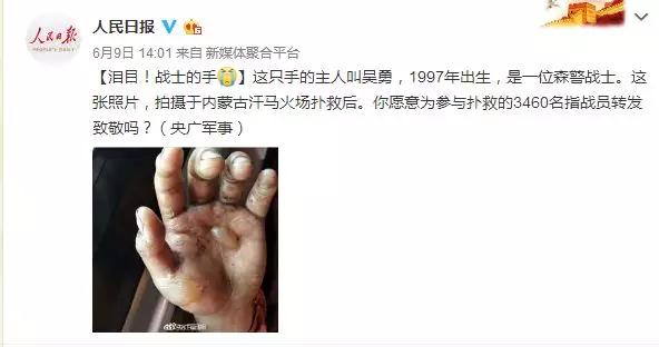 有人说,战士的手是一双总有伤口的手。是啊,他们的这双手,曾与烈焰抗争,与死神争抢,挽回多少生命!而这张照片,也让不少网友想到了,前几天的那个背影。