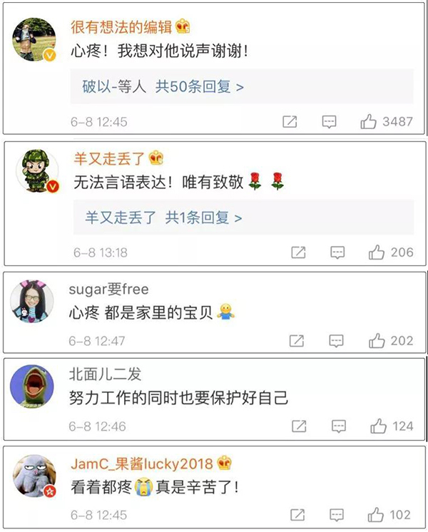 对此,一位网友动情说道:每次看到这样的图片,都感到特别心疼。赴汤蹈火时,请你们千万好好保护好自己。