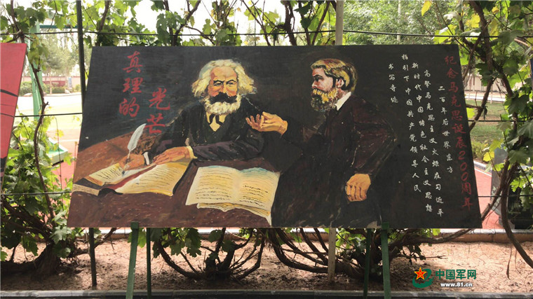在中队营区的围墙上,10块墙画格外醒目。从《共产党宣言》发表到习近平新时代中国特色社会主义思想的提出,都在这里得到了生动的展现。我们都在猜想这可能是某位专业画家的大作,可让人想不到的是,这些画的作者是一名后勤兵,名叫张堂堂。在张堂堂眼里,学画是一件孤单而又丰富的事,孤单的是常常一个人一只笔,丰富的是有无穷的画面和万千的色彩。张堂堂时常一个人去看阳光,从构图到色彩,刚开始的时候,很难分清哪些相融哪些排斥,经常一个人深夜提笔,别人不太理解,身边也没有可以帮助的人,刚开始,他胡乱地画,胡乱地描,后来上网找教程跟着学,在营区内,有一间低矮的废弃平房,张堂堂经常带着他的笔在里面临摹,一次次失败后,总会有一次成功。终于,墙画满了,张堂堂也成了个名副其实的“小画家”。
