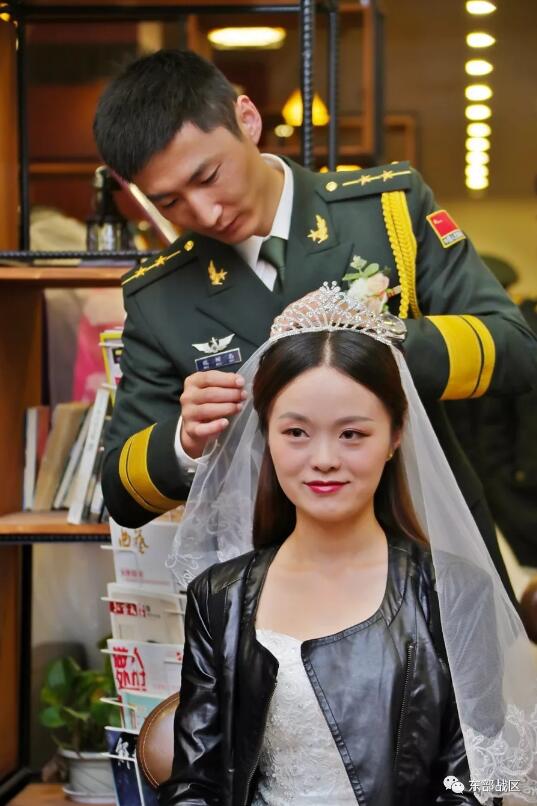 天空微亮,新人们便早早起来开始化妆换装,眼中充满了期待与幸福,她们渴望着与自己的军人丈夫见面,更渴望着此次专属她们的婚礼。新娘们乘坐婚车来到文化活动中心,该旅党委送给她们的第一个礼物便是《新时代的“两不怕”传人》微视频,让她们全面细致的了解旅队这些年来的发展变化。