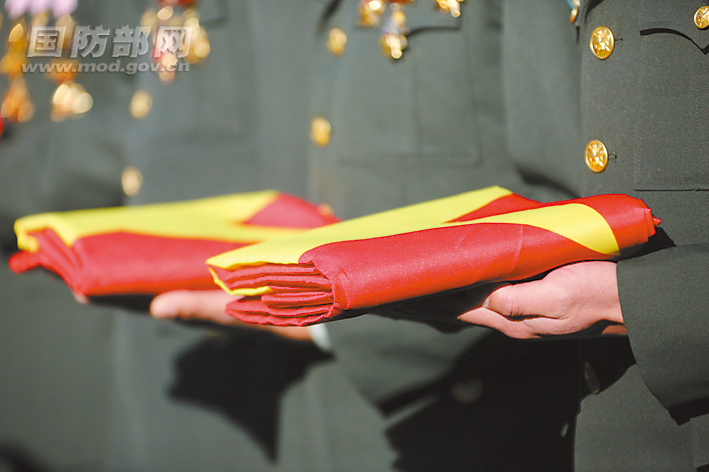 国旗护卫中队回赠活动嘉宾的国旗。谢芳 摄