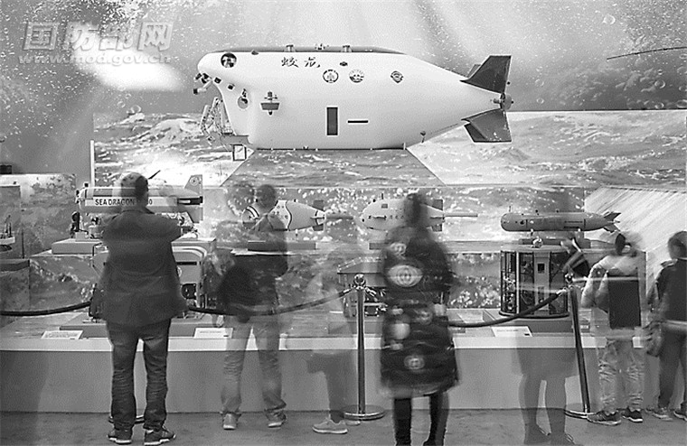 观众在观看“蛟龙”号载人潜水器模型。新华社记者 才 扬摄