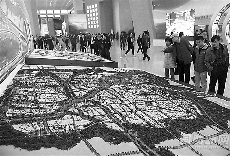 观众在观看北京城市副中心规划模型。 新华社记者 罗晓光摄