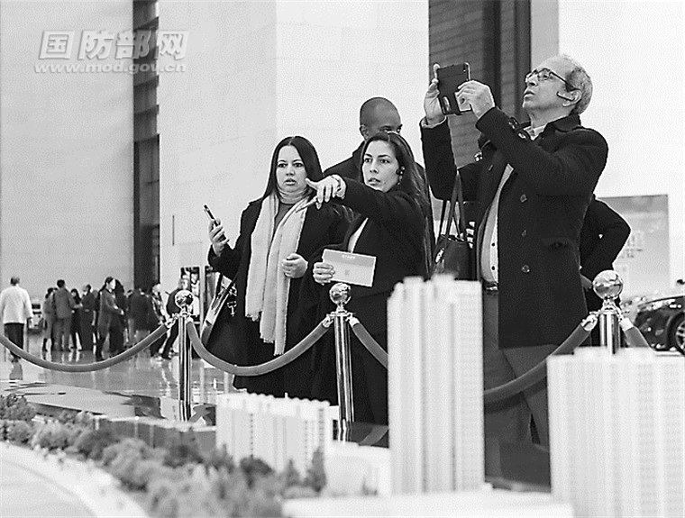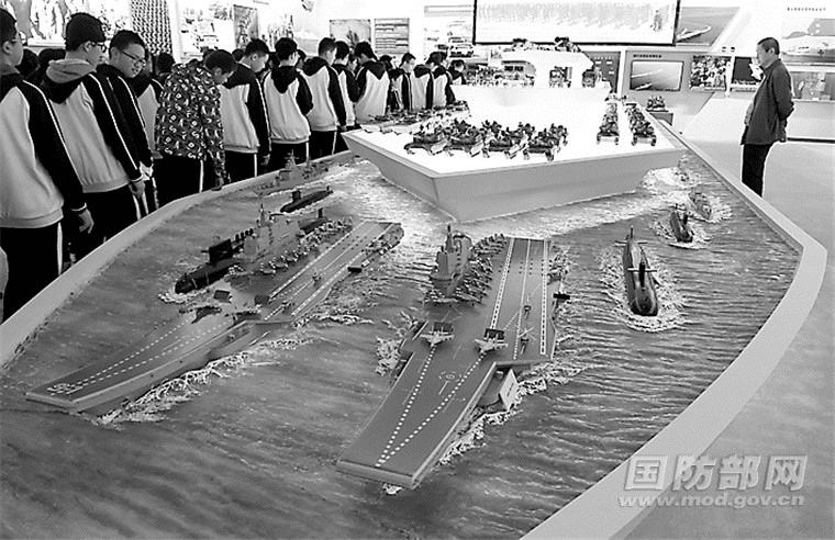 观众在参观改革强军主题模型展台。 新华社记者 罗晓光摄