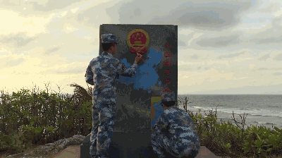 在永兴岛为主权碑描红