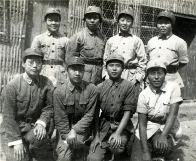 新四军皖南女兵合影,后排右一为唐求。
