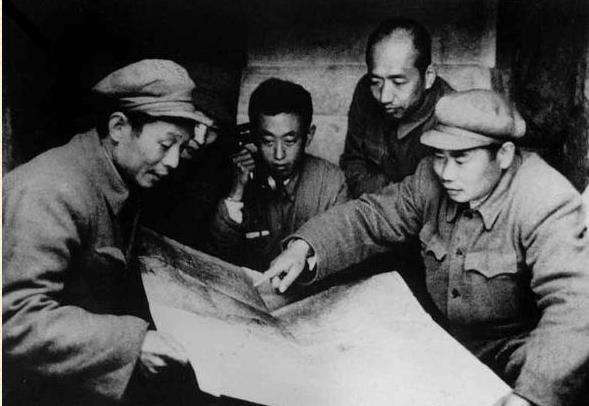 志愿军十九兵团司令员杨得志(右)与政委李志民指挥强度临津江