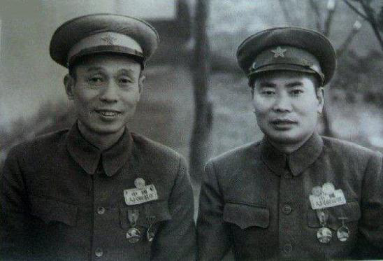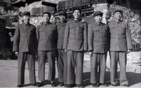 1954年,李志民回国前与战友王平(右起)、杨得志、李志民、杨勇、李达、解方在朝鲜。