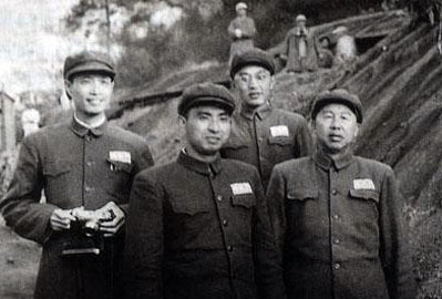 1953年,志愿军第二十兵团司令员杨勇(前中)、政治委员王平(前右),参谋长张震(前左)在朝鲜。