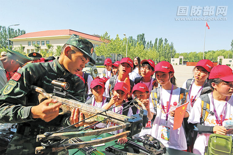 七月中旬,来自宁夏固原市西吉县的五十名品学兼优的“春蕾女童”及家长代表走进武警宁夏总队银川支队机动大队,观摩军事课目演示、体验警营生活。