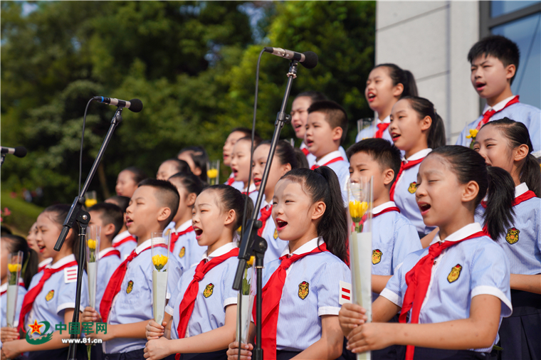 福州市教育学院第一附小学的少先队员献唱《我们是共产主义接班人》。阙永君摄