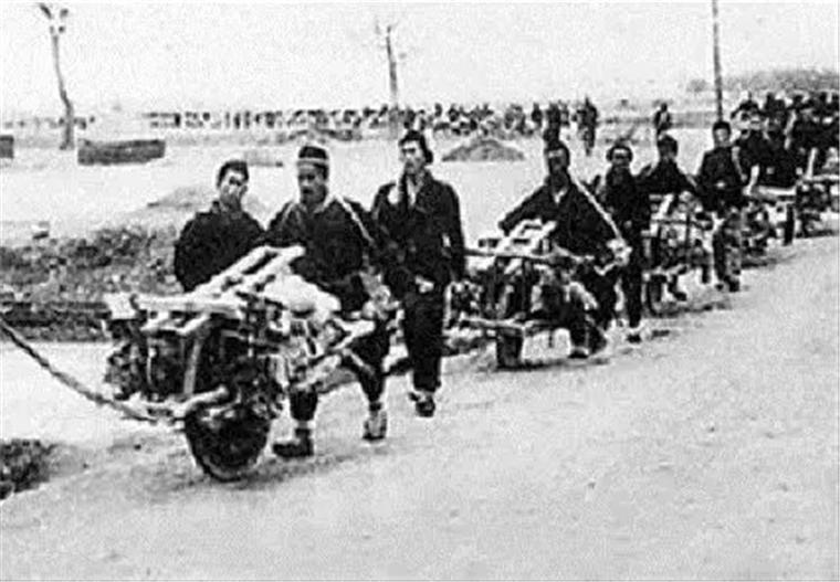 据统计,整个淮海战役期间,人民军队80%的辎重装备、弹药粮秣,是由支前民工以人背、肩挑、车推等方式完成的,一共出动小推车88万多辆,挑担31万副,上阵民工达543万人,换言之,每一个战士身后,都有9个民工在支援保障作战。