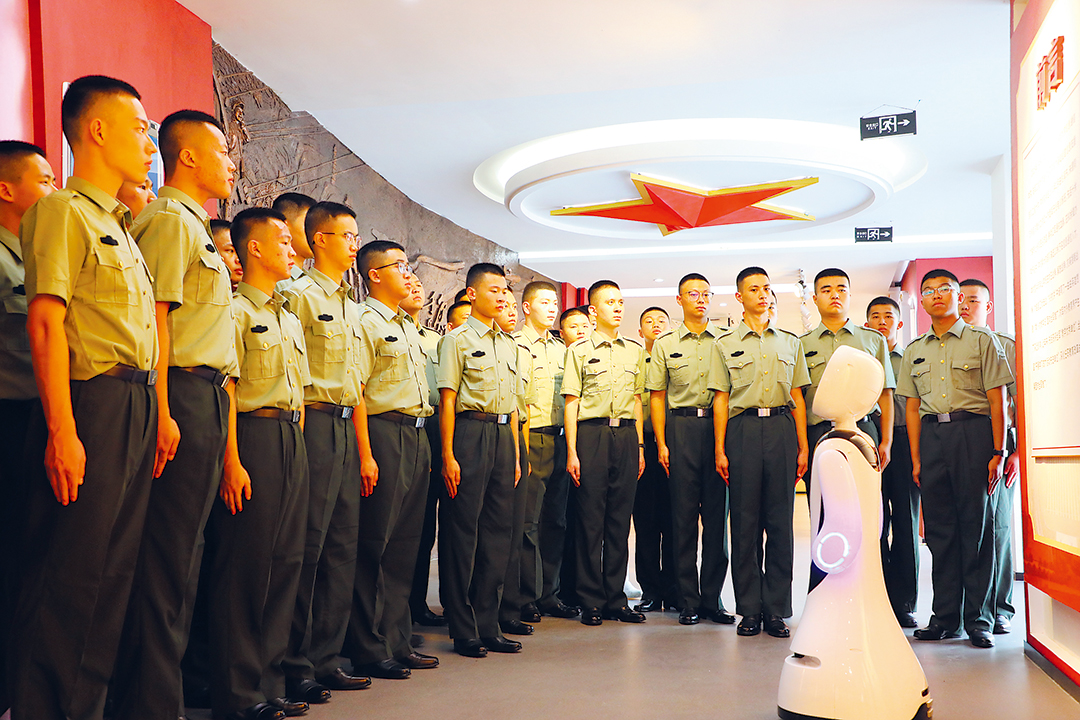 信息支援部队工程大学机器人“小信”为新学员讲解校史。 王 露摄