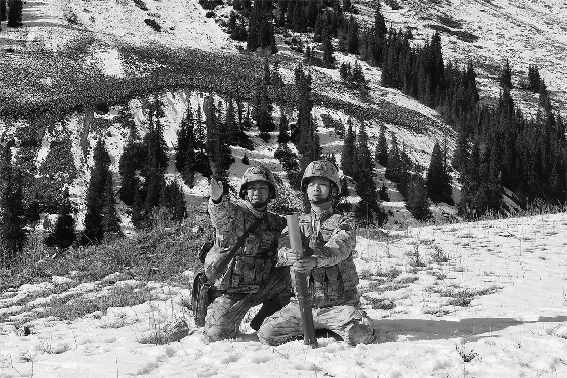 新疆某训练场,大雪漫天,远处的山峦在苍茫中只剩一道模糊的剪影。陆军边海防学院昆明校区教员赵国伟在此代职,和边防官兵朝夕相处、共同战斗。