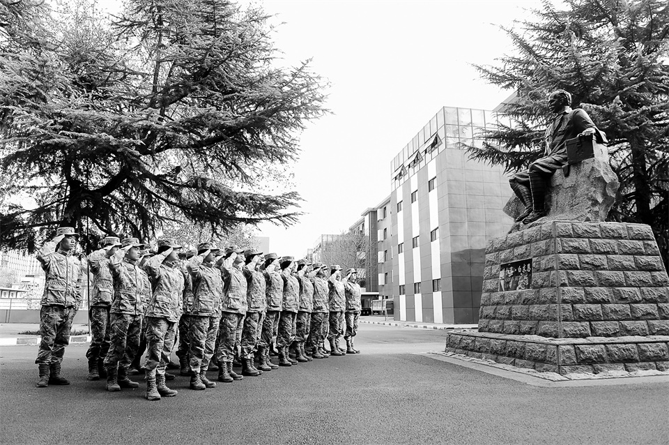 陆军军医大学士官学校组织学员在白求恩铜像前开展仪式教育。章吕辉 摄