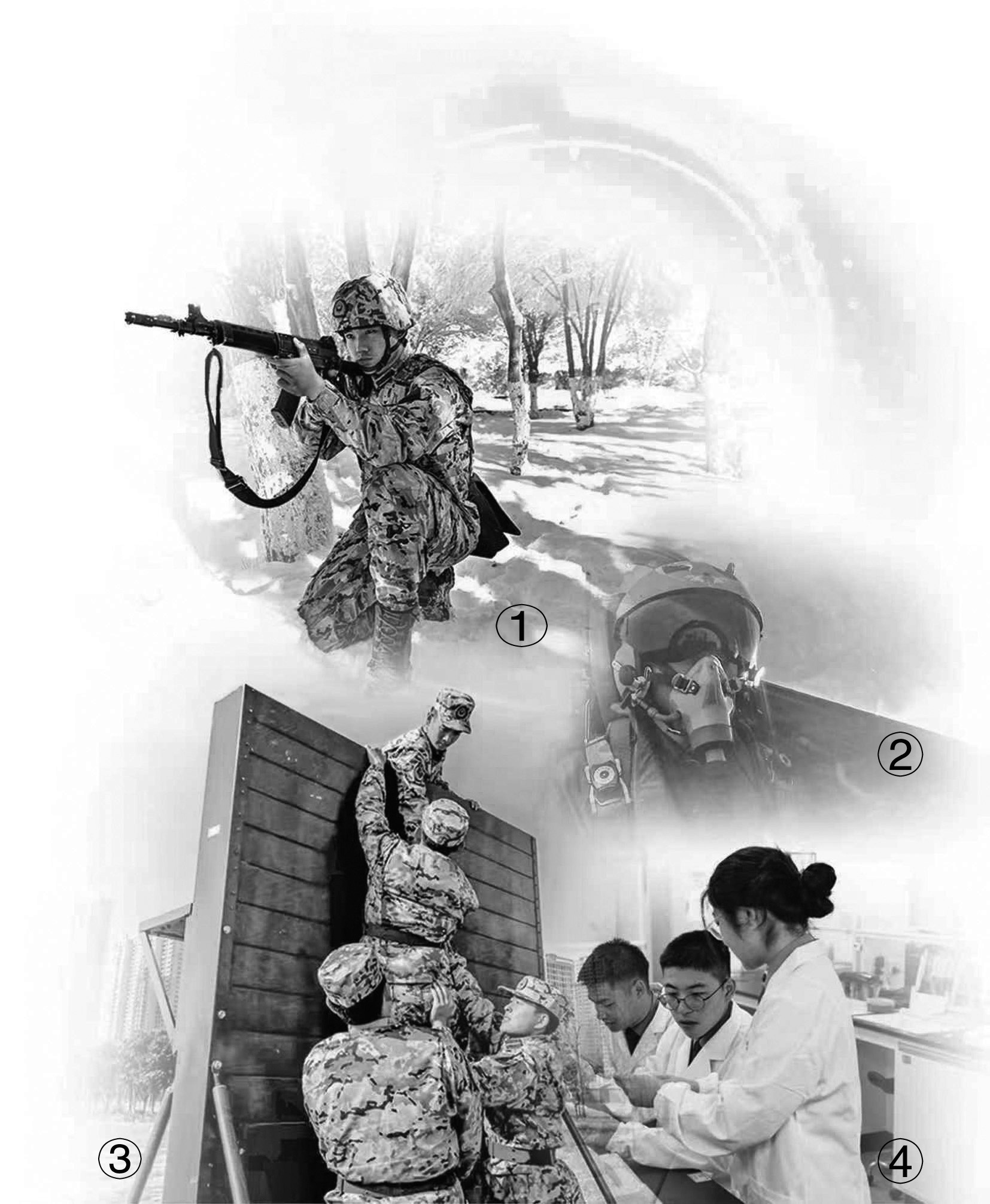 图①:冬季训练;图②:飞行训练;图③:攀爬训练;图④:科研实验。唐明杰、晏 涛、韩伟业、李士成摄