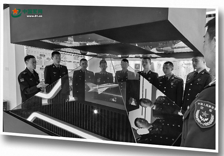 空军工程大学航空机务士官学校教员尹富(左一)在“机务摇篮”博物馆开展思政教学。陈一达 摄