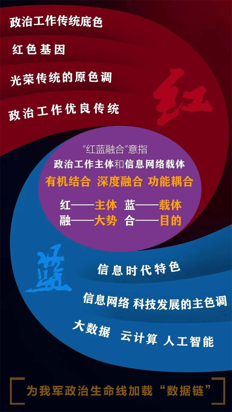 政治工作本质是做人的工作,大学推动“红蓝融合”理念嵌入教学、走入课堂、融入实践,就是要用先进理论占领思想高地,借力网络信息教育人、培养人、塑造人、成就人,塑造官兵纯正、纯洁、纯粹的政治灵魂,昂扬官兵干净、纯净、清净的人格精神。
