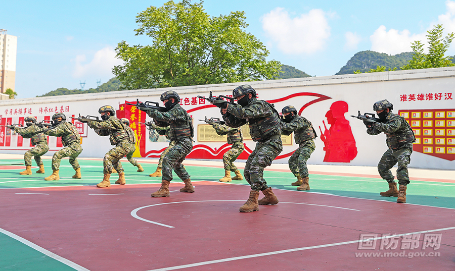 武警官兵进行战术手语演示。 何昆 摄