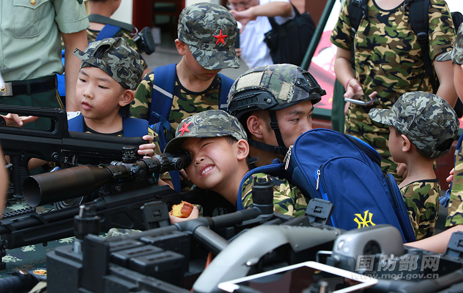 穿上“小军装”,走进秩序井然的军营,军娃们都自觉地挺起胸膛,眼睛里充满了好奇,当看到只有在电视上才见过的武器装备更是兴奋不已。