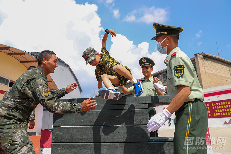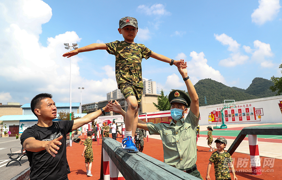 小小军娃勇闯障碍场。 何昆 摄