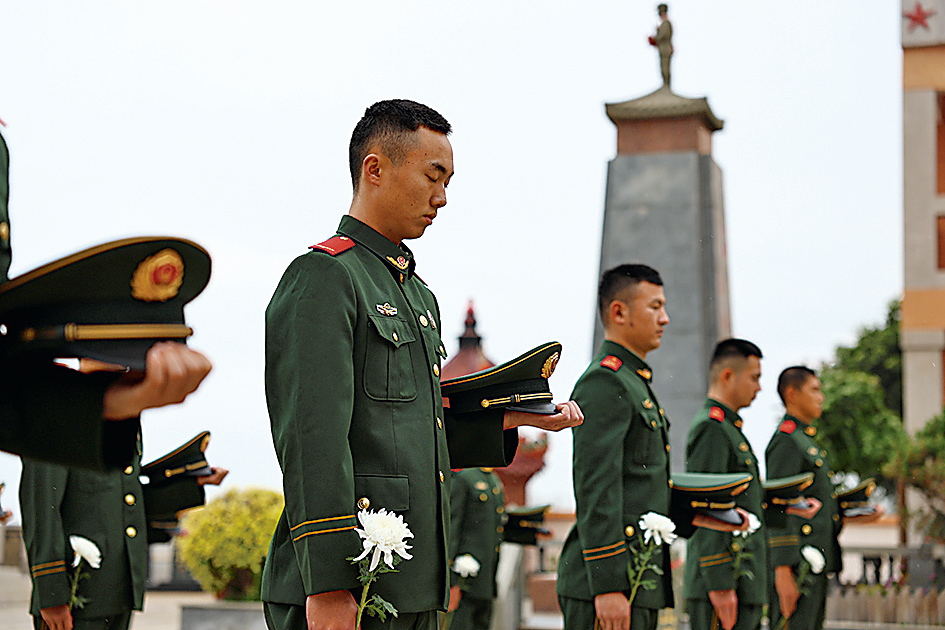 清明节前夕,武警泉州支队组织官兵在烈士纪念碑前祭奠。何纪凯摄