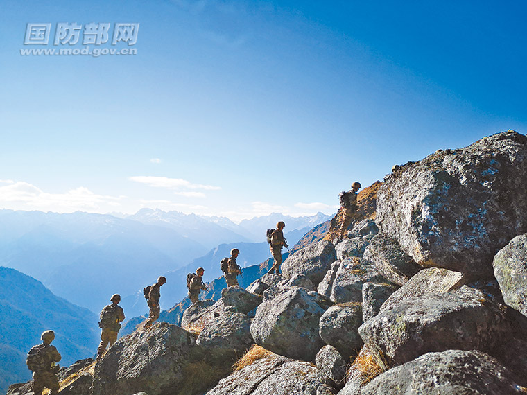 11月9日,西藏山南军分区无名湖哨所一支巡逻小分队穿过乱石堆到达点位,巡逻队伍里有7名是即将退伍的老兵。组织临退伍老兵最后一次巡逻,是无名湖哨所延续至今的传统。李国涛 摄